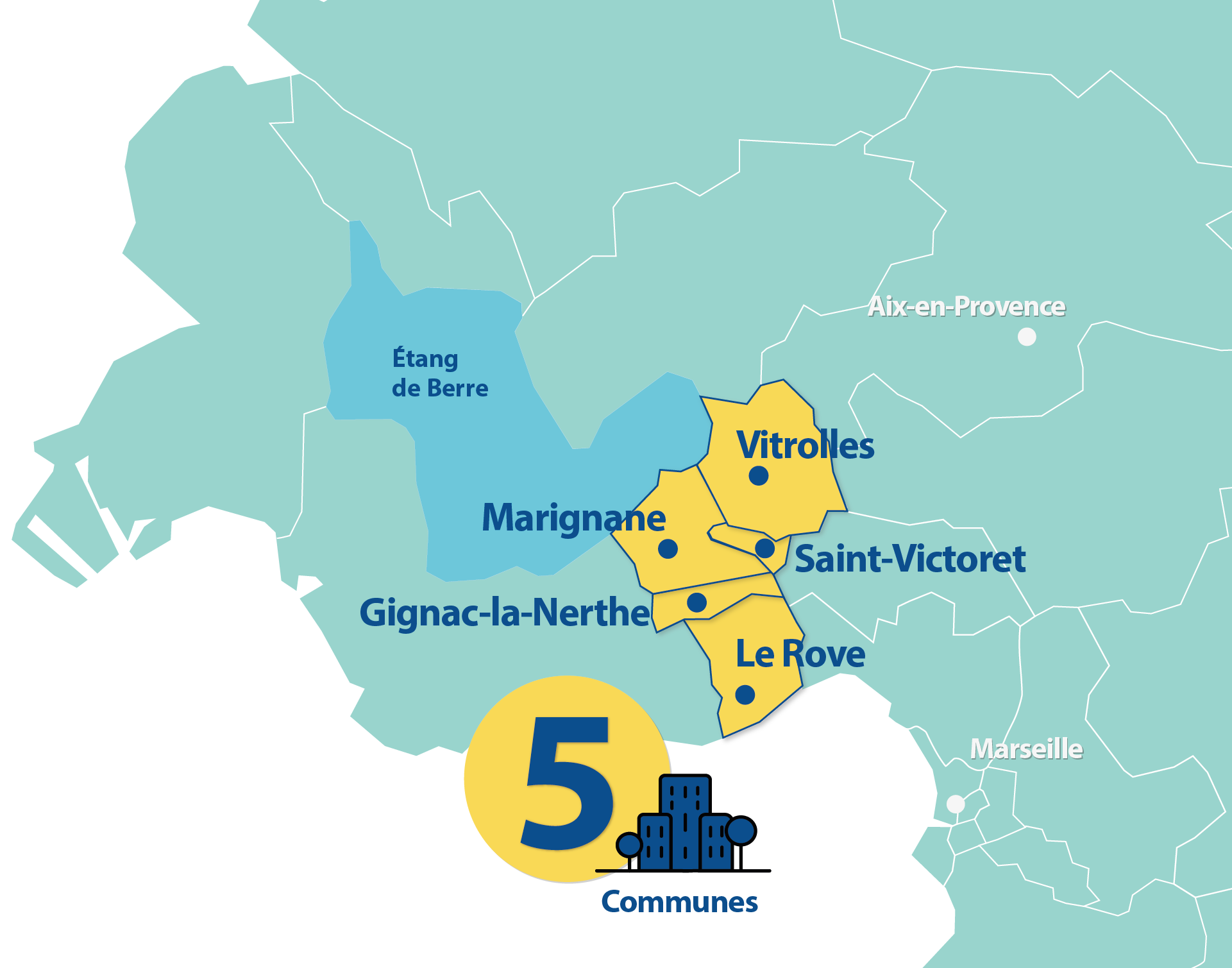Ce territoire a été proposé par les membres fondateurs de la CPTS à l’ARS et à la CPAM à partir de nos habitudes de travail, selon ce que nous avons jugé le plus pertinent en termes de flux de patients. La commune « Le Rove » a intégré courant 2024 notre territoire.